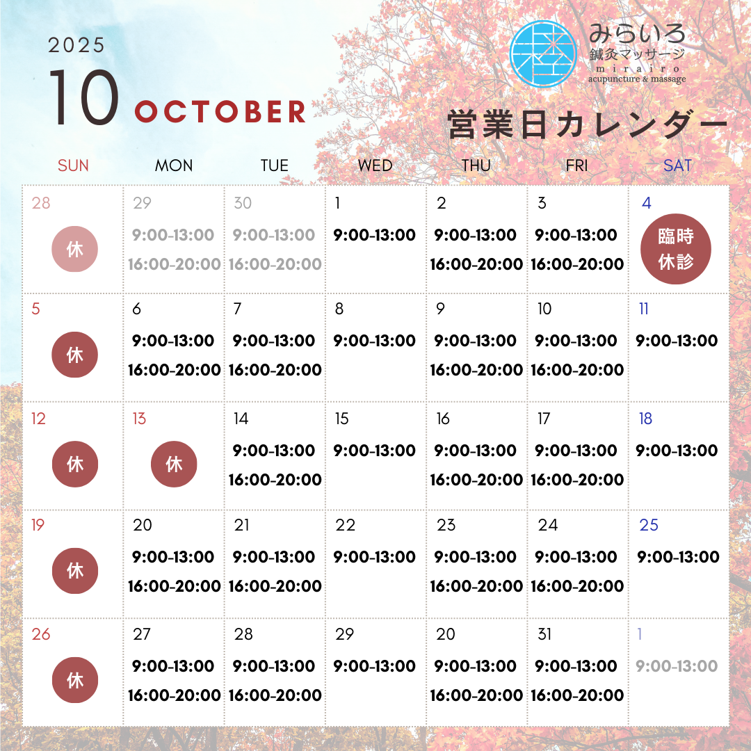 月曜~土曜 9:00〜13:00 / 16:00~20:00
