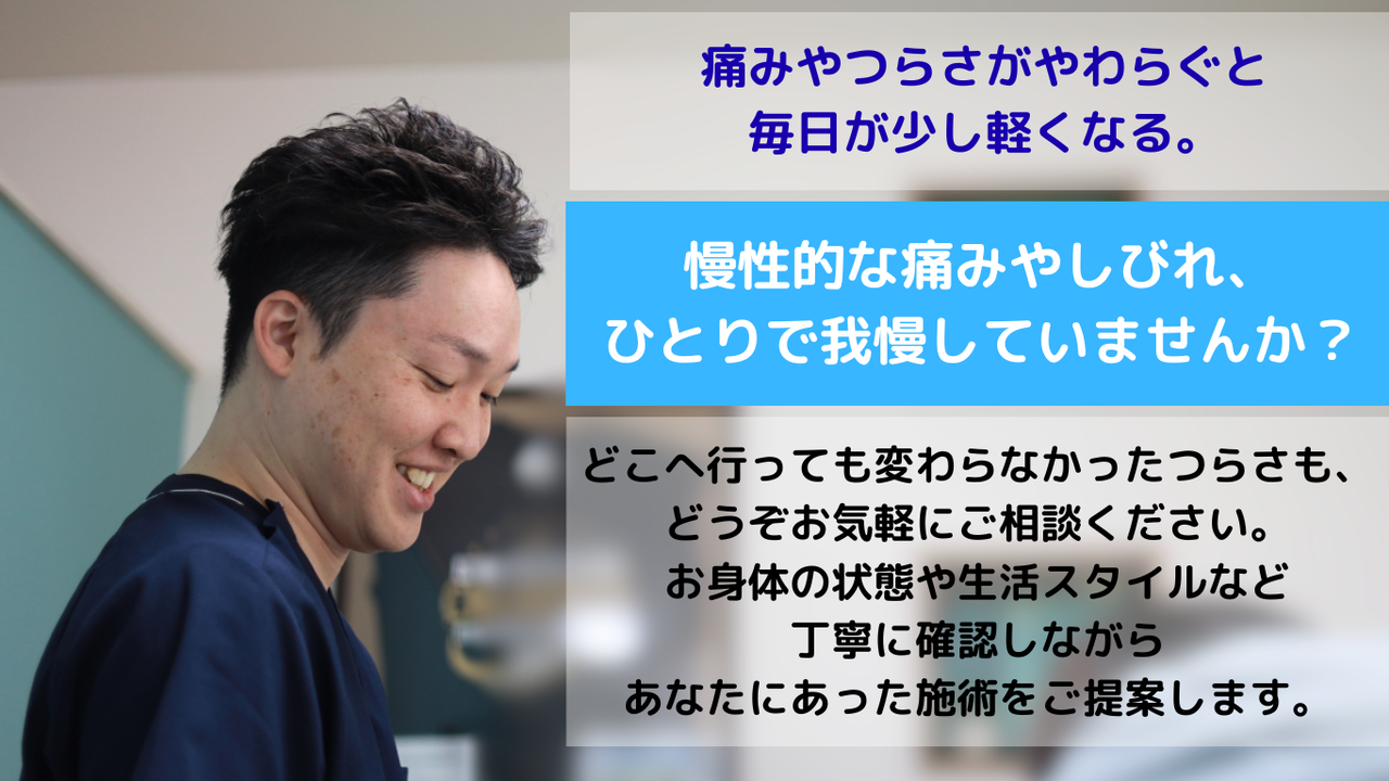 慢性的な痛みやしびれに悩む方も、安心してご相談していただけます。