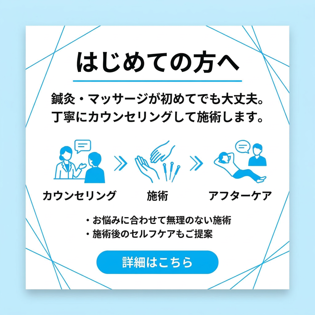 初めて当院で施術を受けられる方に、当院の施術内容や雰囲気を安心して受けていただくための特別価格です。