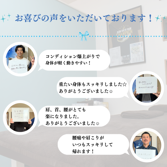 • 施術前と施術後で身体の変化・痛みの変化が実感できる