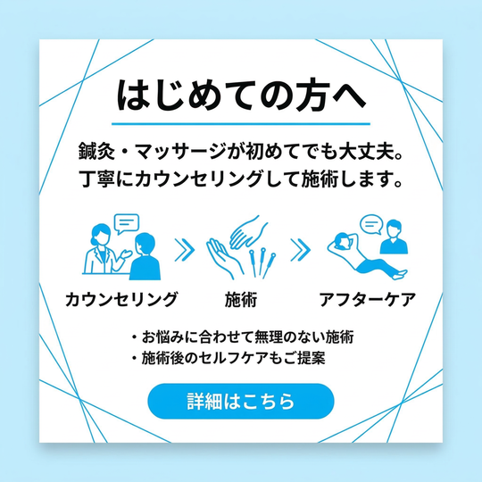初めて当院で施術を受けられる方に、当院の施術内容や雰囲気を安心して受けていただくための特別価格です。