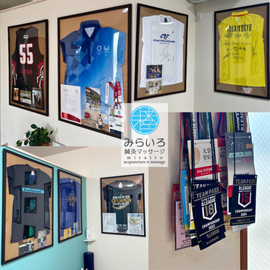 院内には過去の活動でいただいたユニフォームやTシャツ等も展示してありますので、お時間がある時にゆっくりご覧ください!