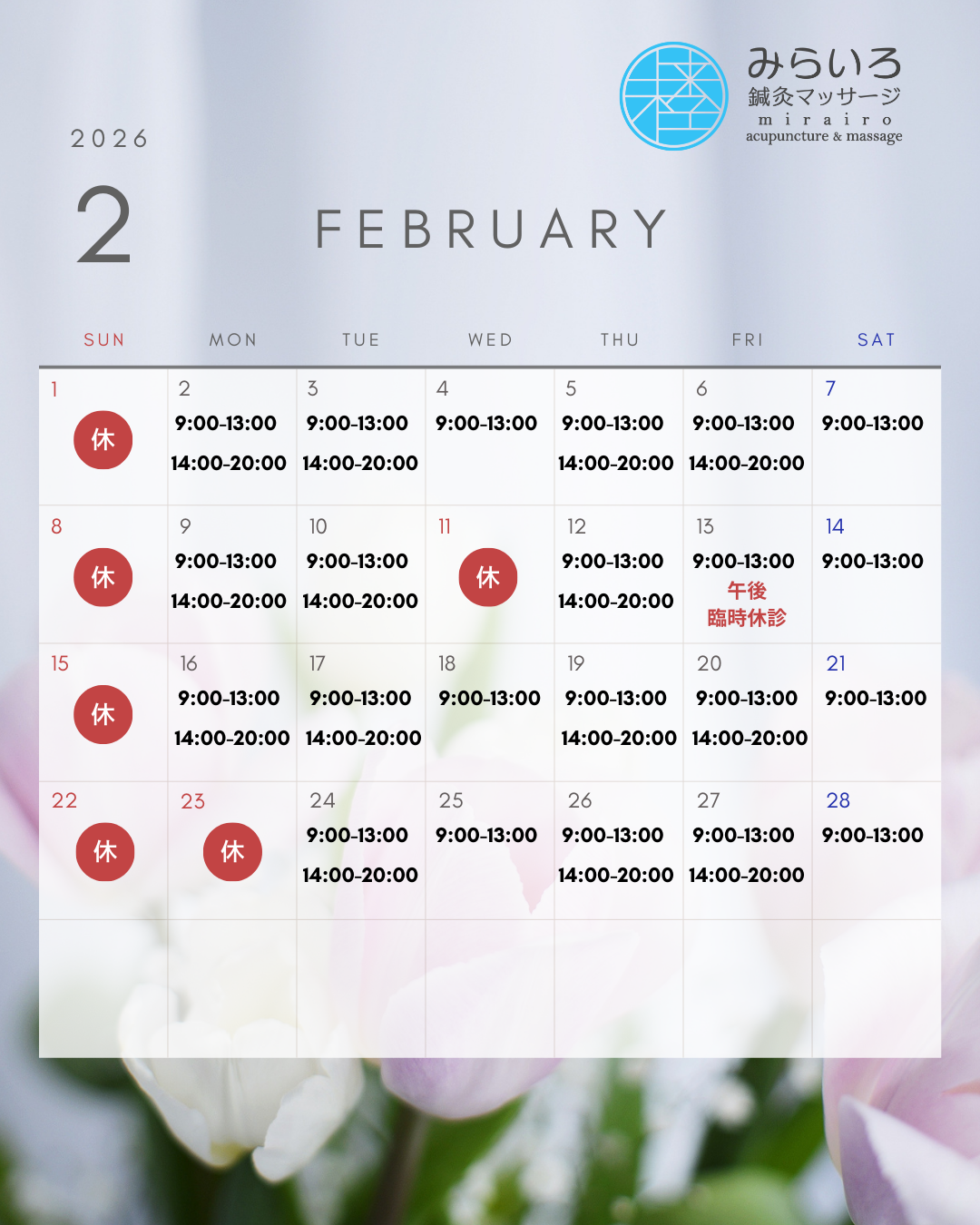 2月より平日午後の営業時間を14時からと変更させていただきました。