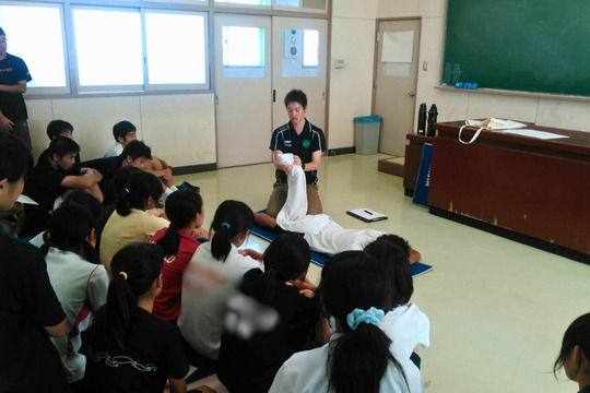 内容はご要望に応じて、アスレティックトレーナーという職業について。や、テーピング・マッサージ講習の実技も承ります。